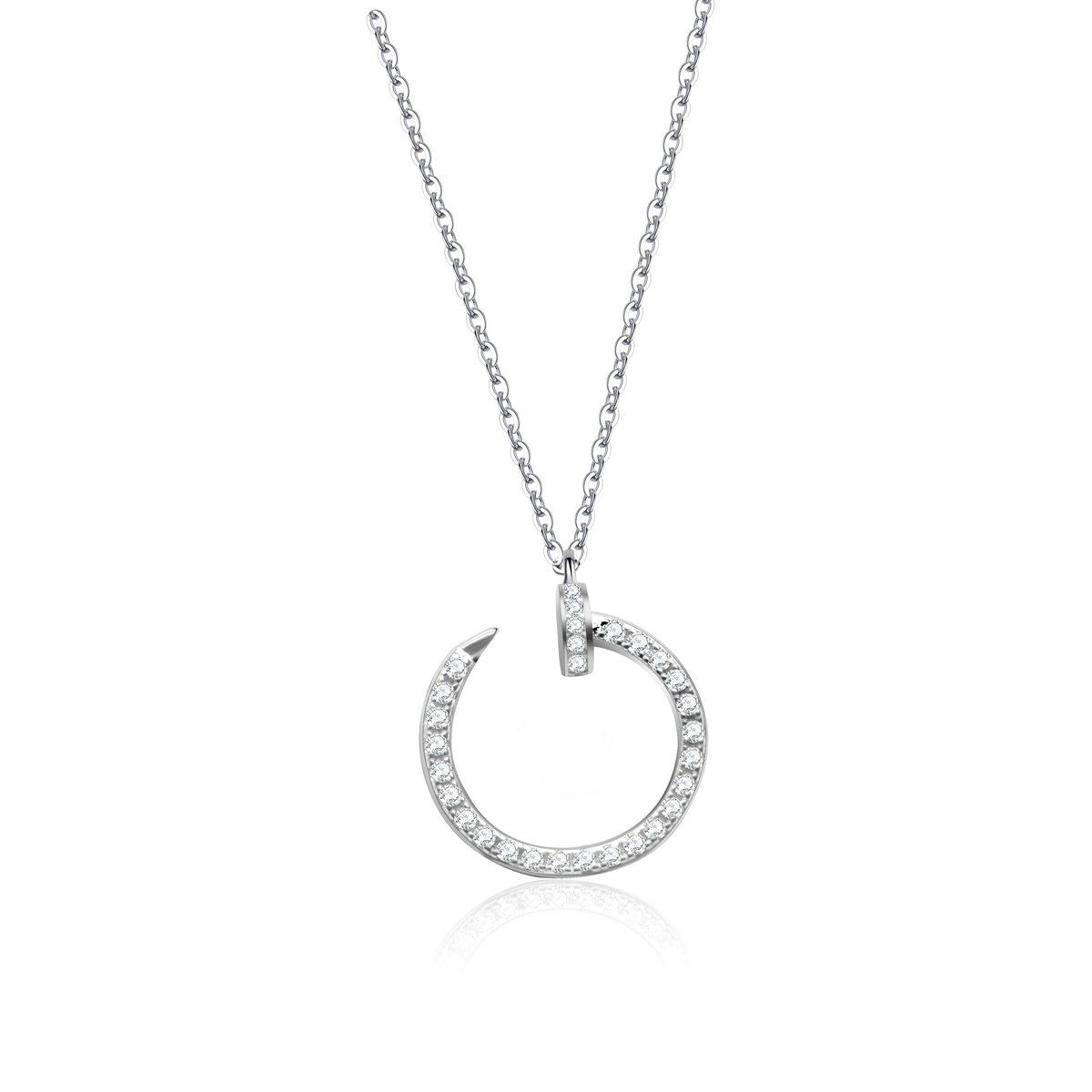 Shine with the brilliance of the stars ✨ with the Nova Ring Necklace, crafted in a sleek open-circle design and adorned with AAA grade cubic zirconia. Its modern crescent-inspired silhouette symbolizes infinity, balance, and radiant energy, making it the perfect blend of elegance and meaning.