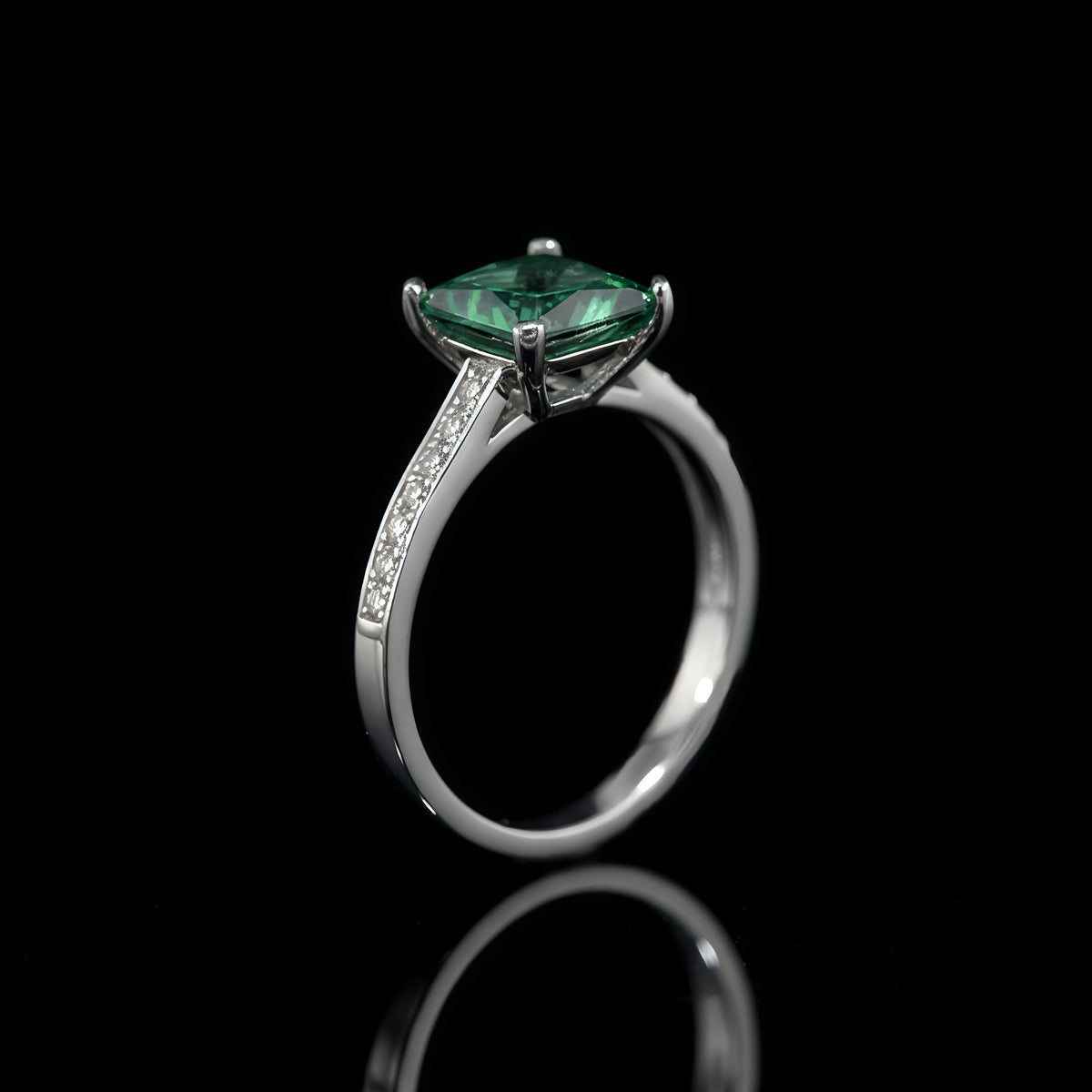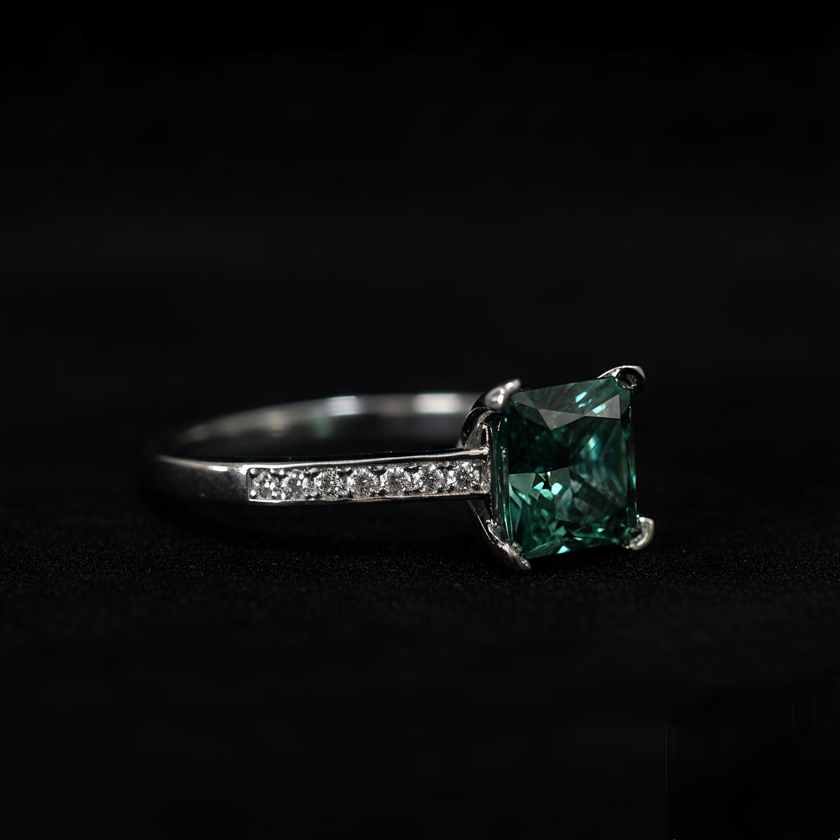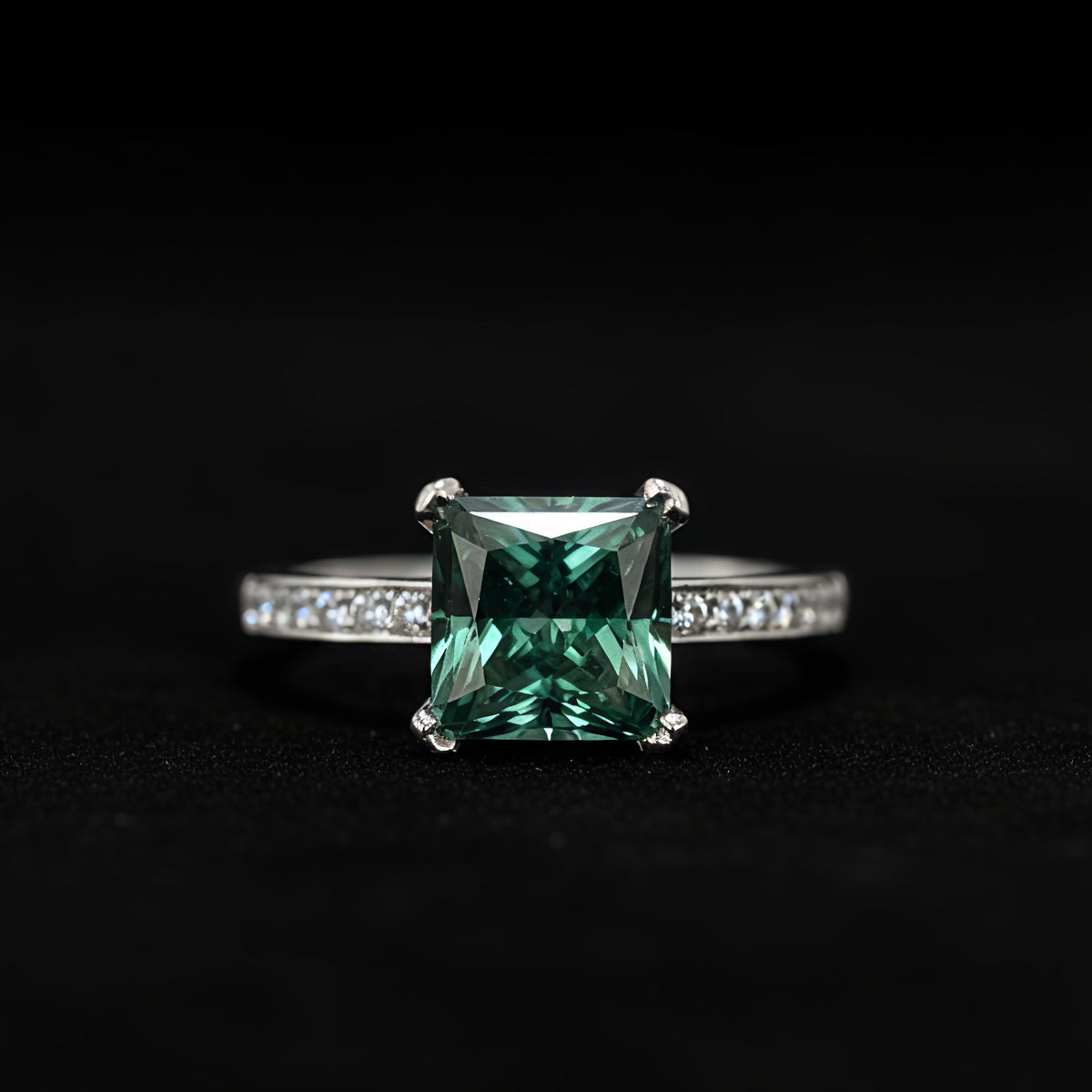 The Aurora Princess Ring is a radiant expression of elegance, featuring a dazzling 2 Carat Princess Cut Moissanite diamond β€” a gemstone celebrated for its unmatched fire, brilliance, and eco-conscious origin. Crafted in luminous 925 sterling silver, the band is accented with micro pavΓ© stones that shimmer gracefully with every movement.With its bold square silhouette and sparkling facets, the Aurora Princess Ring symbolizes timeless love and modern sophistication. Perfect for engagements, anniversaries, or as a statement of personal luxury, this masterpiece captures the magic of love in its purest form.