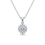 The Aurora Bloom Pendant features a dazzling 1 Carat Moissanite Diamond πŸ’Ž, framed in a radiant snowflake-inspired halo ❄️, symbolizing beauty, purity, and brilliance.