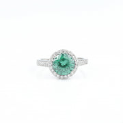 Encircled by a halo of pavΓ©-set accent stones and gracefully mounted on a 925 sterling silver band, plated in rhodium for enduring brilliance, this ring is a true statement of luxury. Every detail, from the finely polished band to the radiant halo, is designed to embody refinement, romance, and prestige